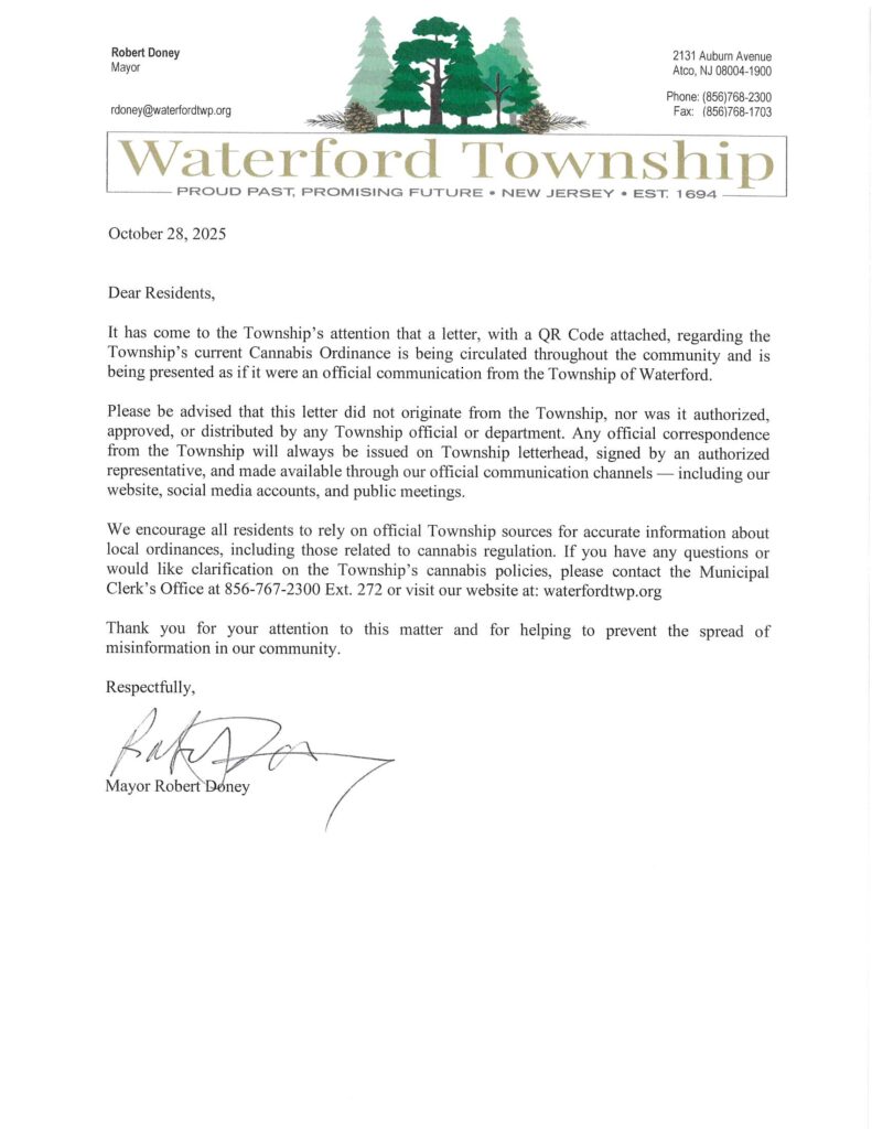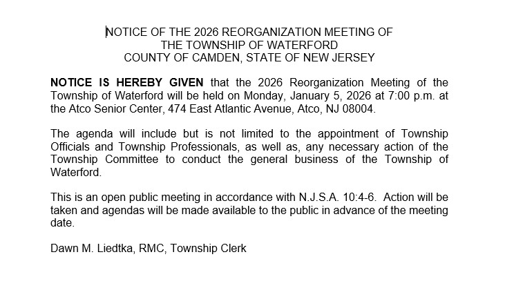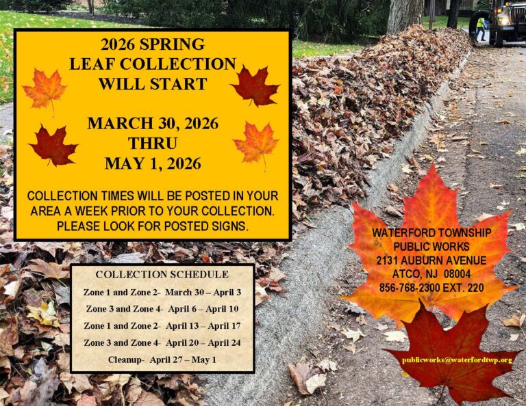 If you have any trouble with accessing the information contained within this website, please contact the Waterford Township Clerk at (856) 768-2300