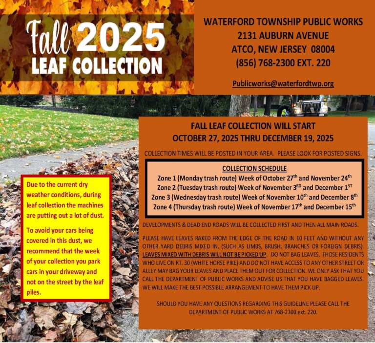 The Convenience Center is open to Waterford Township Residents on Saturday’s ONLY from 8am to 12pm. The Center is for residents wishing to dispose of Bulk Trash, prior to their monthly curbside collection of bulky waste.